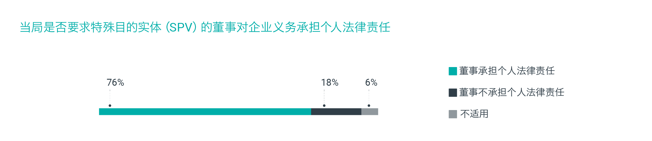 由于对企业透明度以及遵守当地法律法规的关注度提升,四分之三(76%)的司法管辖区表示,特殊目的实体(SPV)的董事需为企业义务承担个人法律责任。