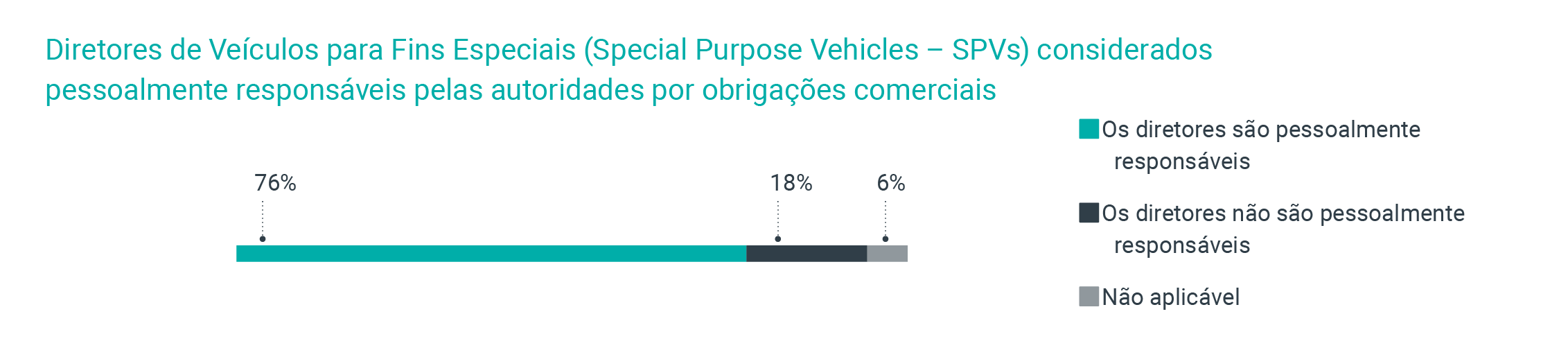 Três quartos das jurisdições (76%) relatam que os diretores de Veículos para Fins Especiais (Special Purpose Vehicles – SPV) podem ser responsabilizados pessoalmente por obrigações comerciais, vinculadas ao enfoque na transparência e no cumprimento das leis e legislações locais.