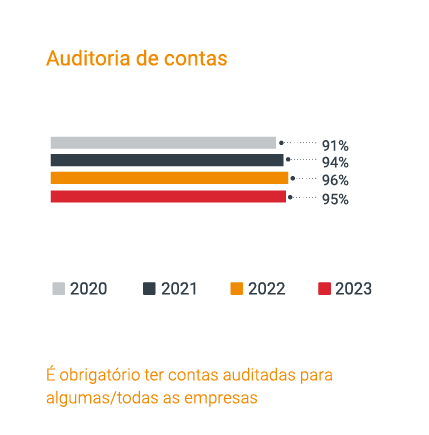 Agora também é mais comum que as jurisdições determinem a necessidade de obter uma licença comercial antes de começar a operar e de executar auditorias fiscais. Em 2023, as empresas precisarão ser auditadas em 95% das jurisdições em todo o mundo, um dado que demonstra que, na grande maioria dos mercados, é inevitável aderir aos padrões contábeis e fiscais.
