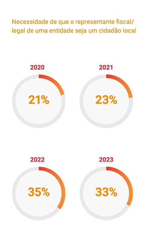 Desde 2020, mais jurisdições exigem que o representante fiscal ou legal de uma entidade seja um cidadão local. Esta determinação pode fazer com que as organizações façam uma contratação emergencial de um funcionário com o conhecimento ou as qualificações necessárias nessas jurisdições ou considerar a realocação de funcionários seniores, o que normalmente incorre em custos adicionais.