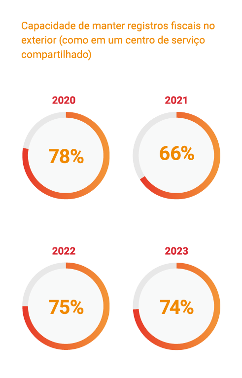 Também é menos comum em 2023 que as jurisdições permitam a manutenção de registros contábeis no exterior, como em um centro de serviços compartilhados. Isso pode gerar complexidade para empresas internacionais, pois elas não conseguiriam armazenar registros contábeis de várias jurisdições em um mesmo local. Na Bolívia, por exemplo, os registros contábeis devem ser mantidos localmente, de acordo com os padrões contábeis bolivianos e utilizando a moeda local. Os contadores devem ser nomeados com base nas recomendações do Serviço de Impostos Nacionais (Servicio de Impuestos Nacionales). Desta forma, não é simples adaptar e replicar processos contábeis ou fiscais utilizados em outros locais. A complexidade local pode apresentar peculiaridades que podem gerar incômodo para empresas internacionais.